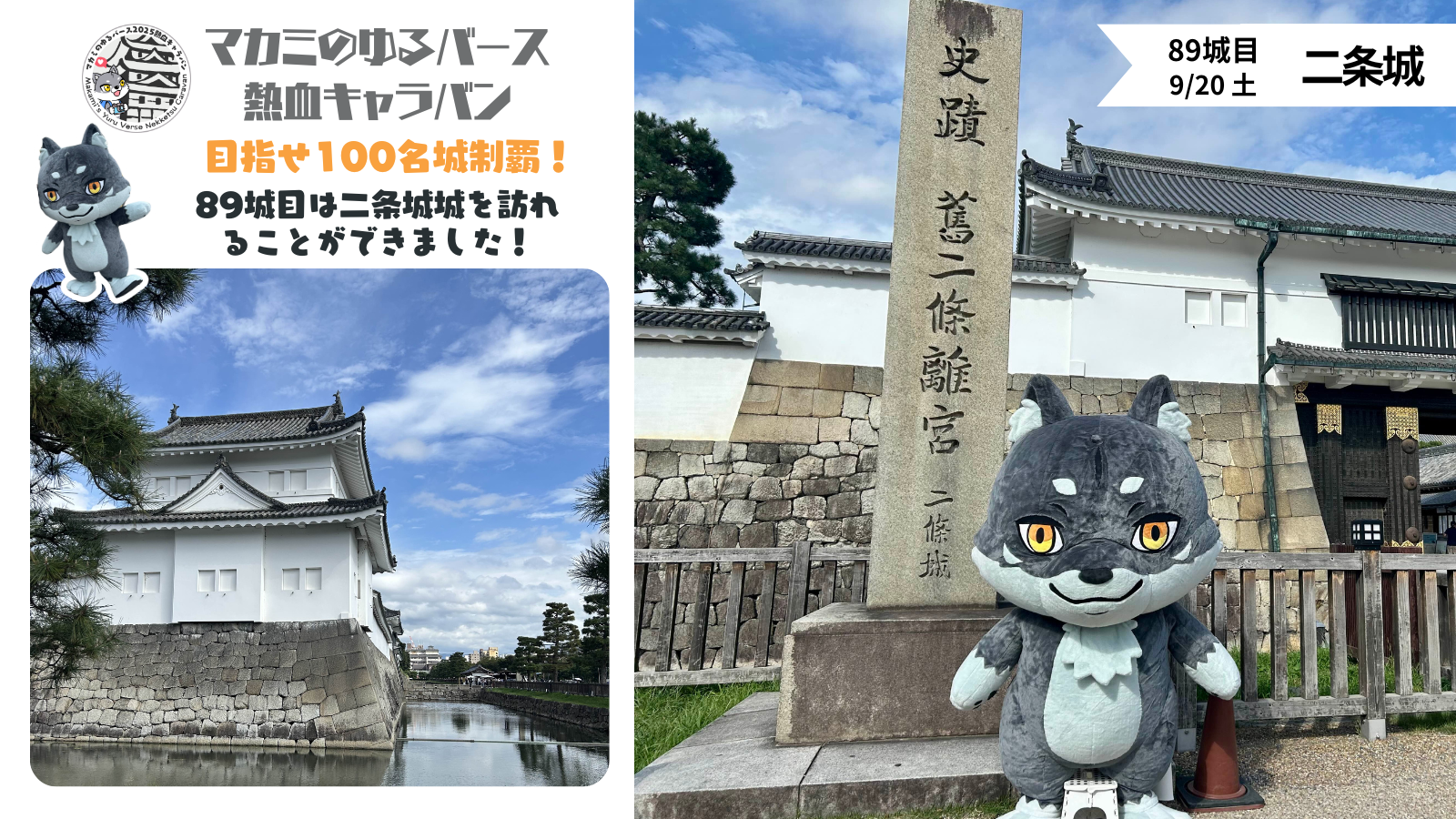 9月20日(土)89城目は京都市にある二条城を訪れることができました🏯江戸幕府の京都での拠点! 大政奉還の舞台として よく知られているお城だよ~🐺✨