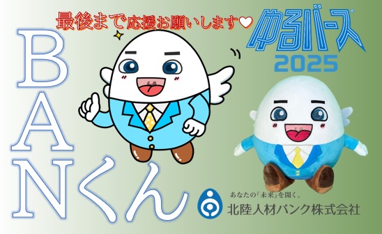 メディア BANくん | 北陸人材バンク株式会社 BANくんに最後まで1票お願いします!! 2025/09/24 21:57 ゆるバース投票期間も残りわずか!どうか最後までボクに投票よろしくお願いします!投票はこちらから↓yurugp.jp/characters/4376※ゆるナビID登録(無料)が必要です