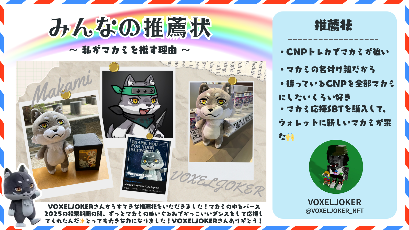 VOXELJOKERさんから、すてきな推薦状が届きました🐺✨