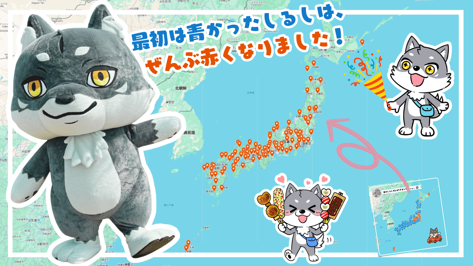 赤いしるしはそのお城を訪れたしるし✨最初はぜんぶ青だったけど、ぜんぶ赤いしるしになりました🐺✨みんなとチャレンジしたマカミのゆるバース熱血キャラバン🏯🔥毎日のみんなの応援のおかげでマカミは前に進み続けることができた✨こころがありがとうでまんたんです🐺💕
