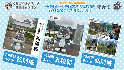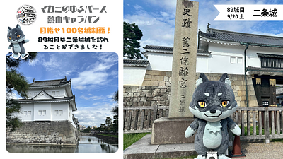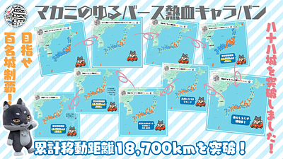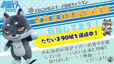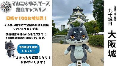 マカミが日本100名城制覇にチャレンジ中🔥マカミゆるバース熱血キャラバン🏯✨ただいま88城を巡りました🌟決選投票が開催される9/27(土)・28(日)までに達成なるか?!