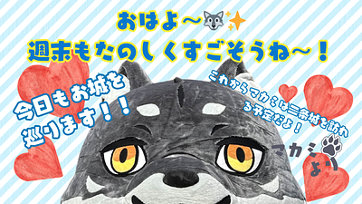 おはよう!🐺🌈週末はなにして過ごす??マカミは今から二条城に行くよ~!マカミのゆるバース熱血キャラバン🔥日本100名城制覇まであと12城だよ!がんばります🐺✨
