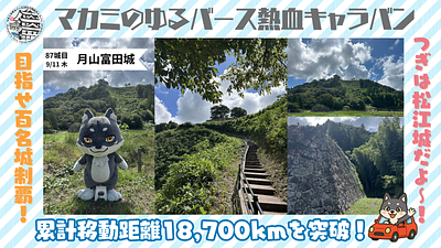 累計移動距離が「18,700km」を突破しました!!マカミは現在日本100名城達成にチャレンジ中🔥日本にあるすばらしい城をめぐって、魅力をみんなに伝えたいと思っているよ~🏯✨がんばって達成するぞ~!応援よろしくお願いします🐺💖