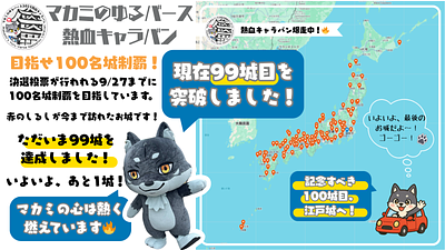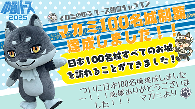 マカミのゆるバース熱血キャラバン🔥70日間で日本100名城をめぐる旅へのチャレンジ!!達成しました~!🐺🏯✨7月19日にはじまったこのチャレンジはゆるバース2025決選投票までに100名城達成が目標でした🌟やった~~🐺✨
