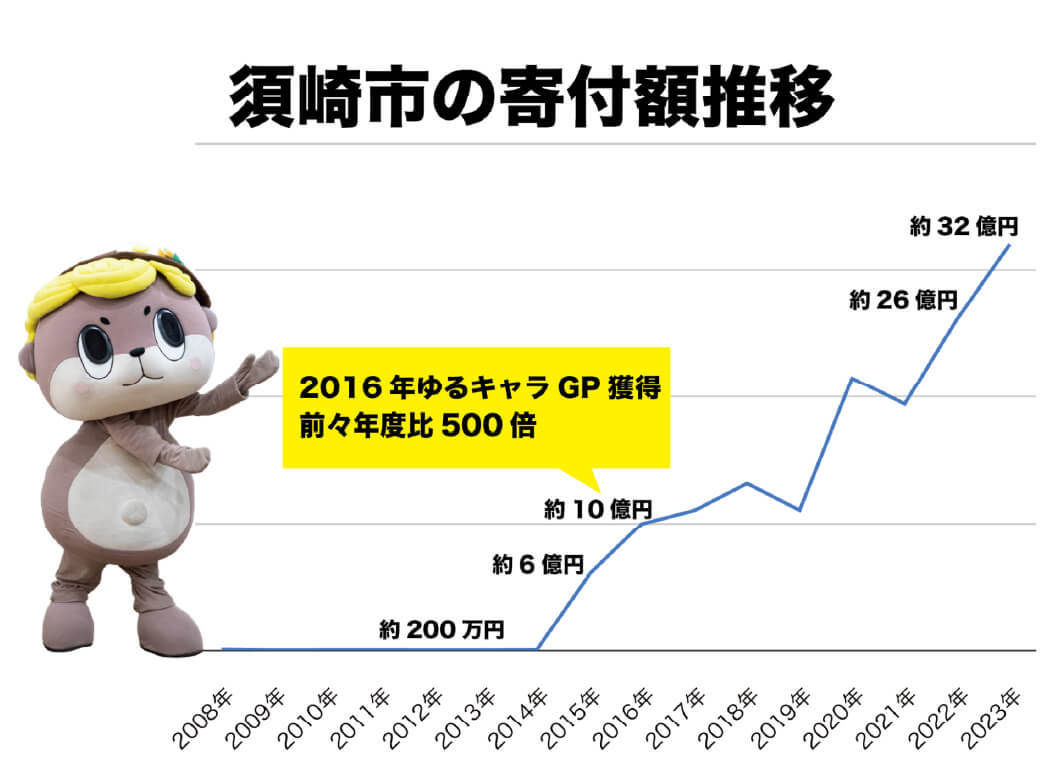 2016年にゆるキャラGPを獲得し、全国的に認知・人気を得ることで、須崎市のふるさと納税寄付額を大きく伸ばすことができました。