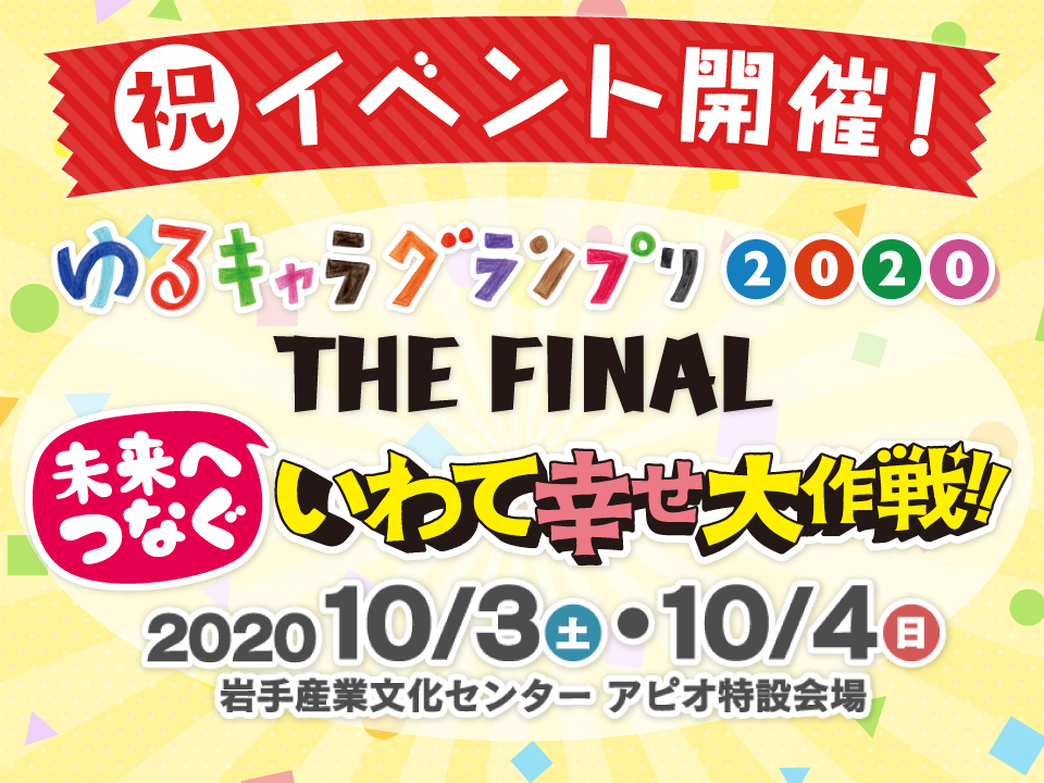 | 名 称 : | ゆるキャラ®グランプリ2020 THE FINAL 未来へつなぐ いわて幸せ大作戦!! | |