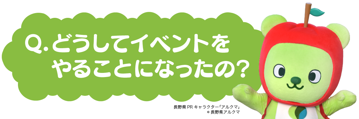今回は、イベント開催地の長野県PRキャラクターアルクマにご協力いただき、わかりやすくイベントをご案内いたします!