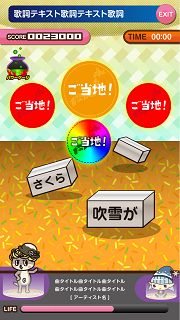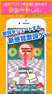落ちてくる歌詞のブロックをターゲットにシュートして高得点を狙うほかに、今回はイベント企画としてゆるキャラ®グランプリ2016で見事グランプリに輝いた須崎市のゆるキャラ®「しんじょう君」が登場しゲームを盛り上げます。