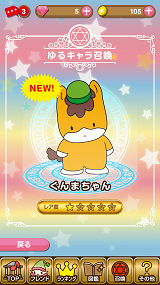 召喚するとゲームをプレイする際に連れていくことができるようになり、さらにゆるキャラを連れてゆるキャラステージをクリアすると、報酬がアップする特典も。