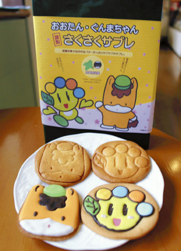 左はぐんまちゃんのサブレとアイシングクッキー。上は土産用の箱】