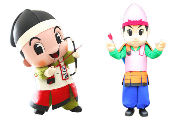 昨年5月、同神社では「一発の矢でチャンスをものにした与一と大田区のかかわりを知ってもらおう」と、東京の与一くんの制作を発案。1998年から与一くんが活動していた同市の了解を得た上で、ピンク色のかっちゅうをまとう現代風のいでたちに仕上げた。