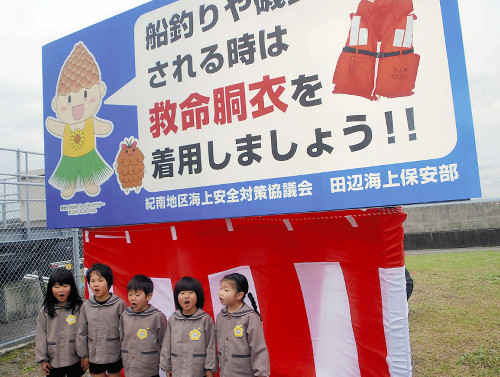 田辺海上保安部によると、2010年からの5年間で、管内では磯などでの釣り中に23人が海中に転落する事故があった。このうちライフジャケットを着けていなかったのが14人で、この半数の7人が死亡したという。