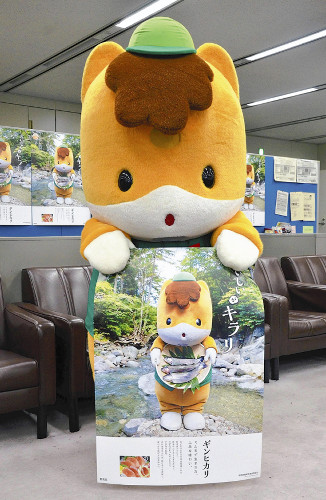 ポスターは川場村の清流に立って、ギンヒカリを持つぐんまちゃんの写真を大きく掲載し、2000部を作製した。同漁協は2013年7月、ぐんまちゃんを「ギンヒカリ宣伝担当理事」に任命しており、知名度の高いぐんまちゃんを起用することで、群馬のブランド魚として広めたい考えだ。今後、旅館や飲食店などで貼り出される。
