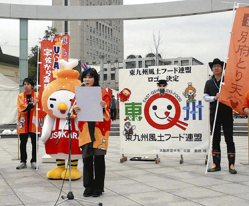 7日に北九州市で開かれたイベントでは、吉武裕子会長(USA☆宇佐からあげ合衆国大統領)や、各発起団体のゆるキャラがとり天や焼きうどんなどを紹介。全国から公募したロゴマークをお披露目し、吉武会長が「設立宣言」をした。