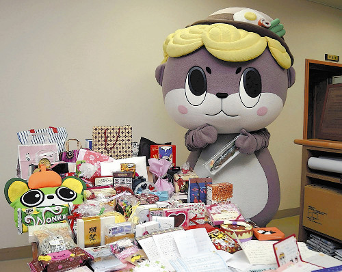 「ゆるキャラグランプリ2014」(オフィシャルメディアパートナー・読売新聞社)で、全国のライバルと競い、4位に入賞した須崎市のマスコットキャラクター「しんじょう君」に、バレンタインデーのプレゼントが続々届いている。