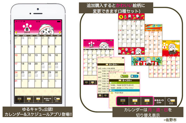 「くまモン(2011グランプリ)」、「さのまる(2013グランプリ)」、「ぐんまちゃん(2014グランプリ)」が、ラインナップ第一弾としてカレンダーアプリになりました。