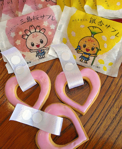 伊豆箱根鉄道駿豆線(通称・いずっぱこ)の車内に1本だけある「ハートのつり革」は、縁結びで話題になった。菓子店「兎月園」(中央町)は、ハート形のクッキーにリボンを通し「つり革」らしく仕上げて販売を始めた。専務の綾部剛さん(40)は「娘がドラマにエキストラ出演したのをきっかけに作った。岡山や広島から買いに来てくれる観光客もいる」と喜ぶ。