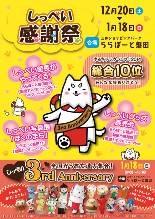 これを記念して2014年12月20日(土)~2015年1月18日(日)の期間「しっぺい感謝祭」が開催されます。