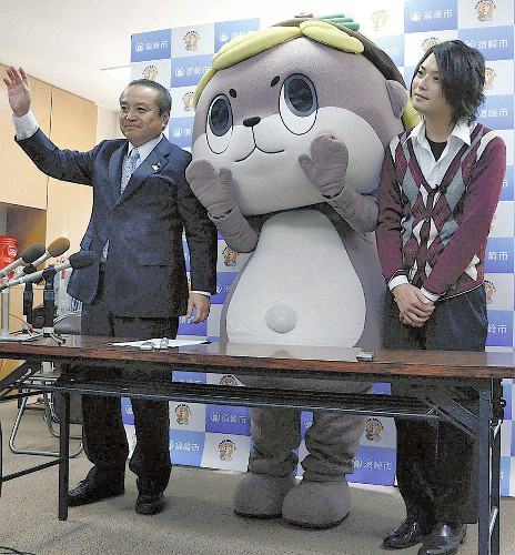 この日の報告会で、しんじょう君にいつも寄り添っている同市元気創造課の守時健さんは「何事も頑張りすぎない“ゆるい”キャラがうけていると思う」とあいさつした。