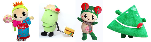 【左から「はながたベニちゃん」、「きてけろくん」、「チェリン」、「ペロリン」】