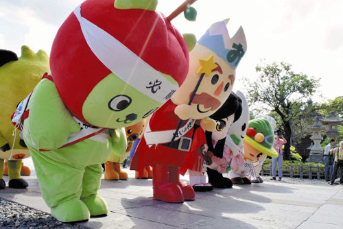 「ゆるキャラ®グランプリ2014」(オフィシャルメディアパートナー=読売新聞社)の投票が始まった2日、県観光PRキャラクター「アルクマ」など県内のご当地キャラが、長野市の善光寺に集結した。