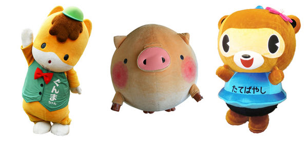 【左から「ぐんまちゃん」、「ころとん」、「ぽんちゃん」】