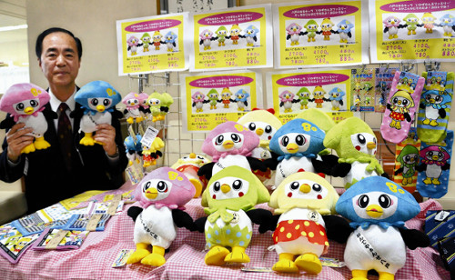 いかずきんズは、特産のイカのずきんをかぶったウミネコで、市制施行80周年の2009年に誕生。昨春の三陸復興国立公園の指定に合わせて双子が加わった。「ゆるキャラグランプリ2013」では、初参加で全国55位と健闘した。