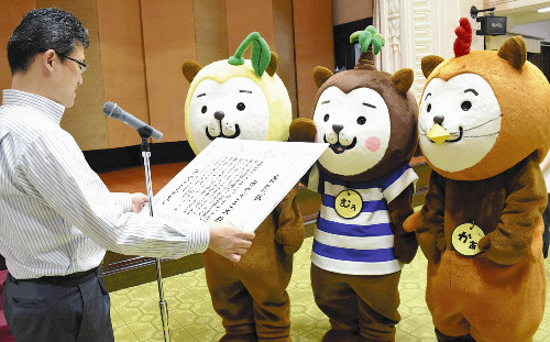 みやざき犬は「ひぃ」「むぅ」「かぁ」の3匹で、2011年に誕生した。昨年の「ゆるキャラグランプリ」で17位に食い込むなど県外のファンも増えているという。