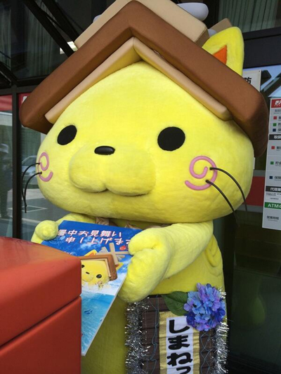 キャンペーンの開始にあわせて、「しまねっこ」も全国のゆるキャラのお友達に暑中見舞いを書いて郵便局に出しに行きました!