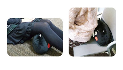 左耳にあるスイッチを押すと、ぶるぶる振動するかわいいクッションです。足や腰にあててぶるぶる♪