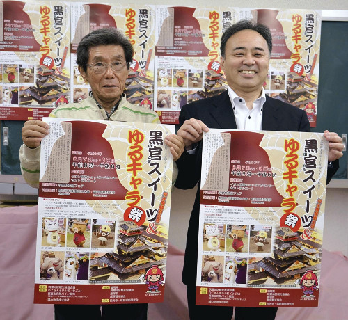 福岡県筑豊地区の商工業者らでつくる同地区観光推進会議(石原敬会長)は6月7、8日、飯塚市で、福岡藩祖・黒田官兵衛を題材にした新作スイーツと筑豊5市のキャラクターが登場する「黒官スイーツ&ゆるキャラ祭」を開く。