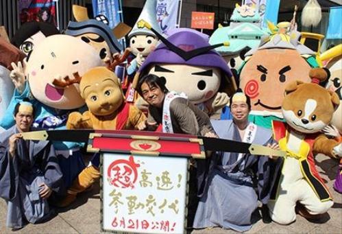 佐々木蔵之介が主演する映画「超高速!参勤交代」のPRイベントが東京・有楽町で行われ、ご当地キャラクター23体が集合した。