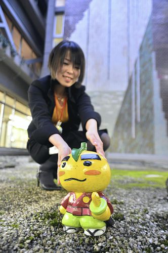 ゆずるは、ゆるキャラの全国コンテストで、ベストテン入りしたこともある人気キャラ。石像は市民から寄贈された高さ25センチの御影石製で、重さは8キロ。盗難やいたずらを防ぐためにと、ガラスで囲った立ち入り禁止の中庭で、厳重に管理されている。