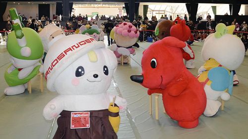 グランプリ2位の「出世大名家康くん」(浜松市)や「ふっかちゃん」(埼玉県深谷市)、「与一くん」(大田原市)など27のゆるキャラが出場。「チームさのまる」など計5チームが組まれ、大縄跳びや椅子取りゲーム、フットサルなどで競った。真剣に戦いながらも、道具を隠したり、大げさに悔しがったりするなどして会場を沸かせた。チームさのまるが優勝し、誕生日に花を添えた。