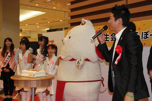 特製ケーキのろうそくの火を「しっぺい」が吹き消したり、写真撮影会、グッズ販売や巨大ふんどしへの寄せ書きコーナーの設置、お誕生日記念バッジの配布などの様々な催しが行われ、終始和やかな雰囲気の誕生日会となりました。