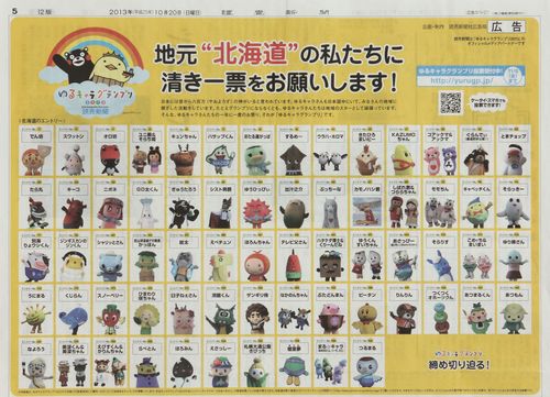 「ゆるキャラグランプリ2013」エントリーキャラが読売新聞【北海道版】に登場!